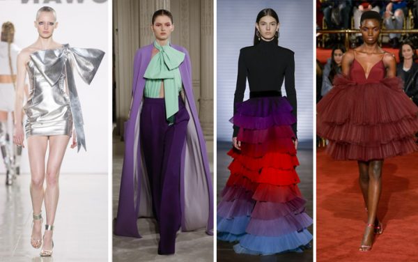 Feminilidade com atitude parece ser a chave da estação. Os laços ganham versões dramáticas e bem oversized, nadando na contramão da delicadeza. Já os babados aparecem tanto multicoloridos quanto monocromáticos, brincando com volumes e redefinindo os contornos da silhueta feminina.
