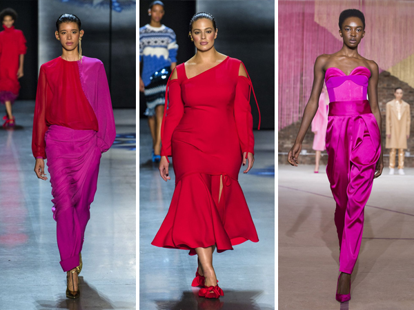 As duas cores já estavam em alta há algumas temporadas e prometem manter seu reinado ao longo do Inverno 2019. O vermelho e o rosa ganharam destaque nas passarelas em looks monocromáticos cheios de atitude, além de se unirem para criar combinações vibrantes e irreverentes.